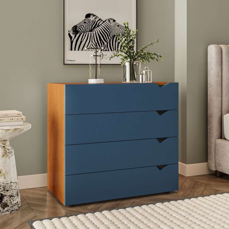 Cômoda 4 Gavetas Freijó e Azul Porto Politorno