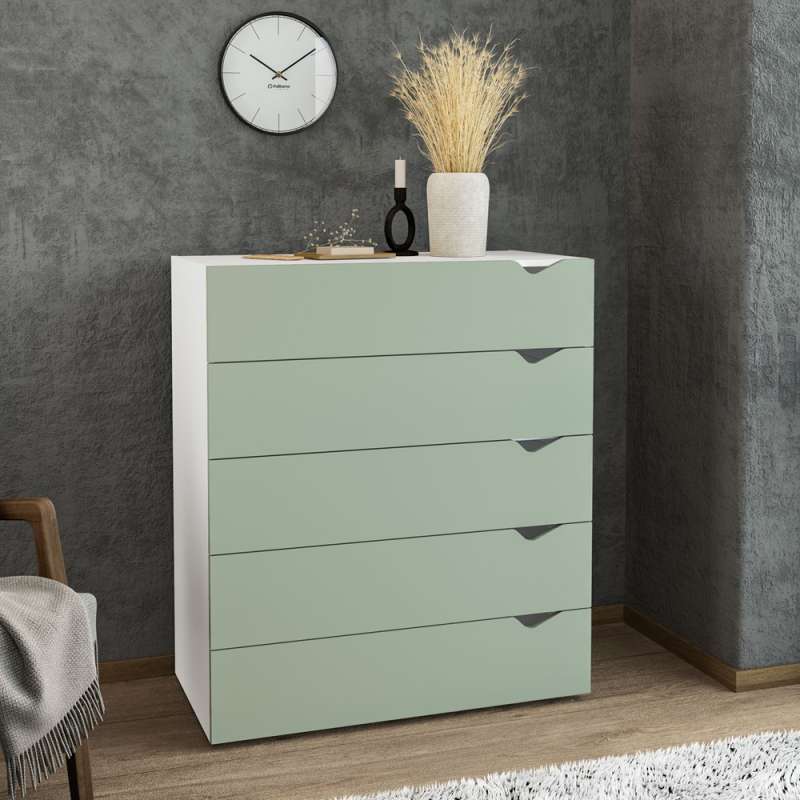 Cômoda 5 Gavetas Branca e Verde Porto Politorno