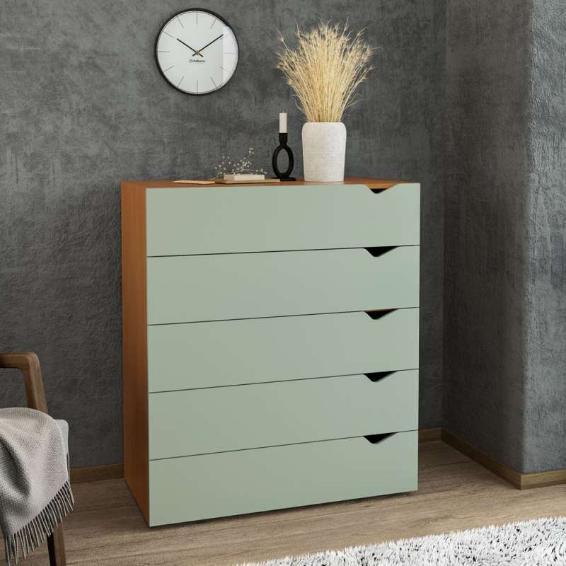 Cômoda 5 Gavetas Freijó e Verde Porto Politorno