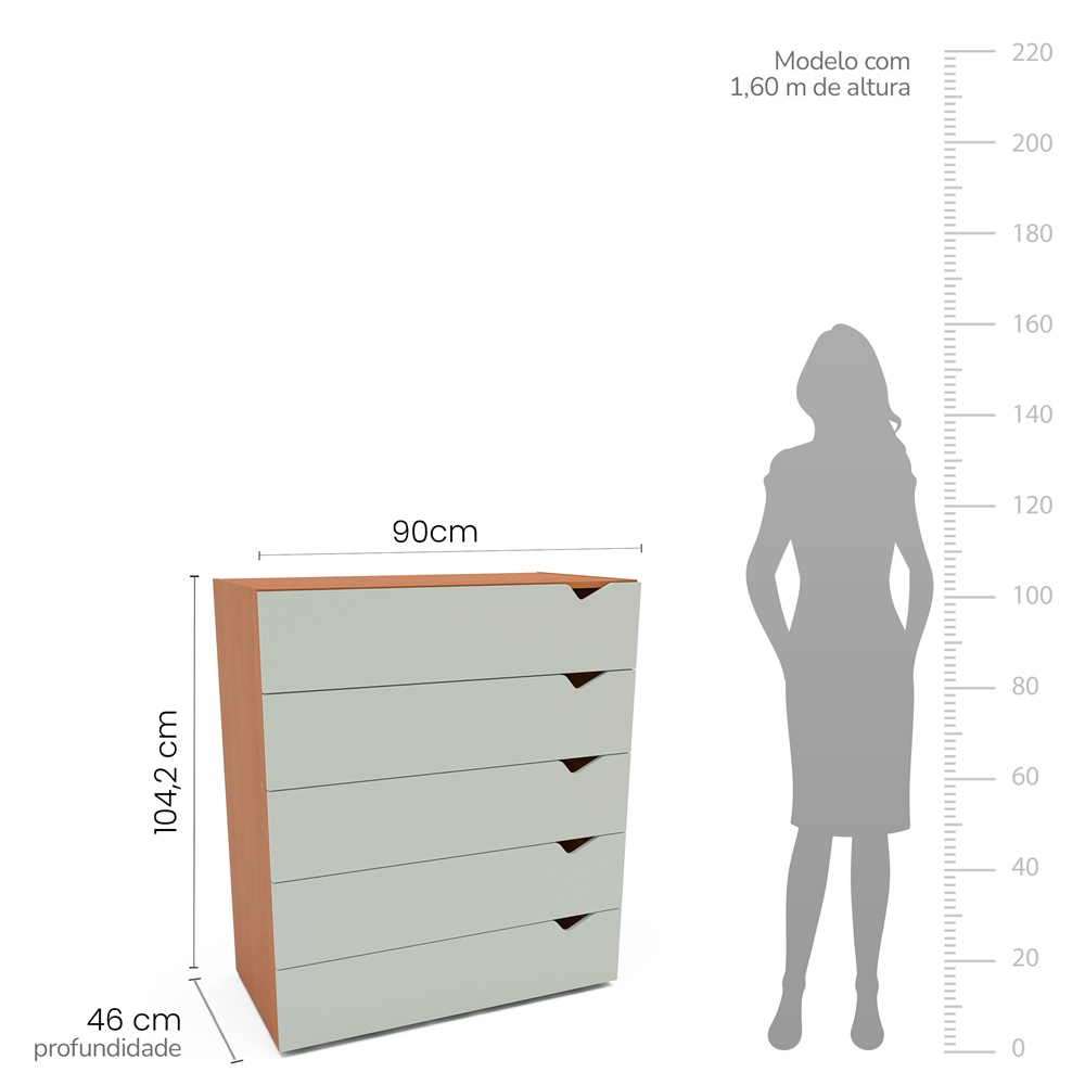 Sobre Cômoda 5 Gavetas Freijó e Verde Porto Politorno