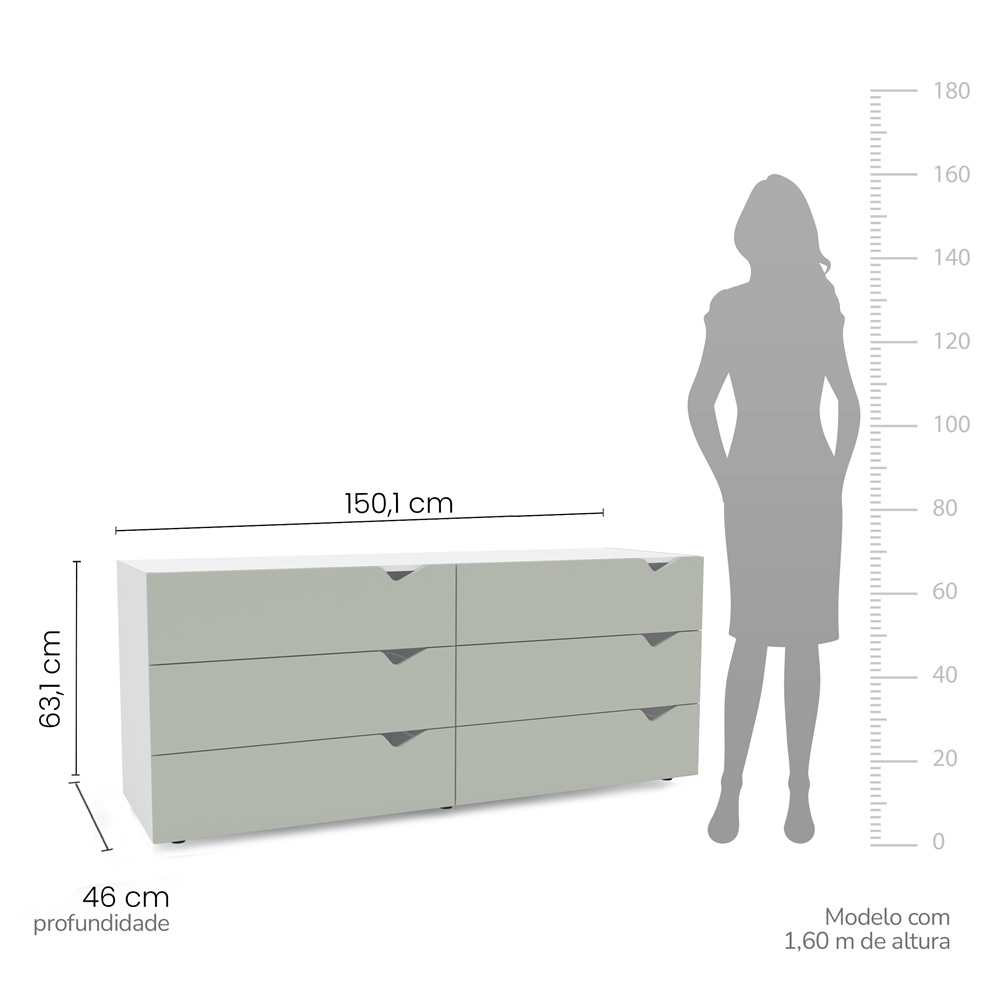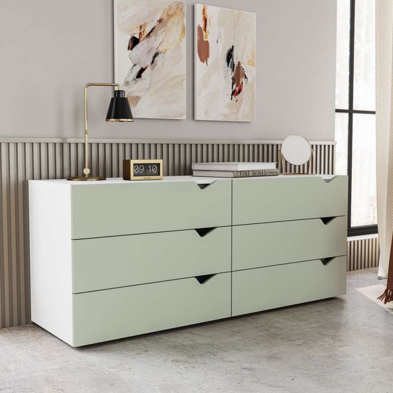 Cômoda 6 Gavetas Branca e Verde Porto Politorno