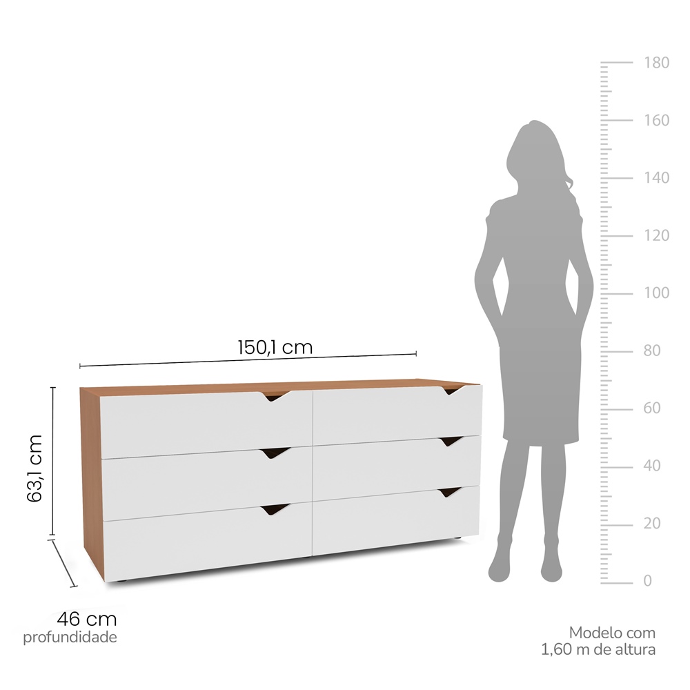 A Cômoda 6 Gavetas Freijó e Branco Porto da Politorno Móveis é sinônimo de elegância, espaço e funcionalidade. Com seu design moderno e clean, ela se adapta perfeitamente a diferentes ambientes — do quarto ao escritório, passando pela sala de estar como um rack ou balcão de apoio.