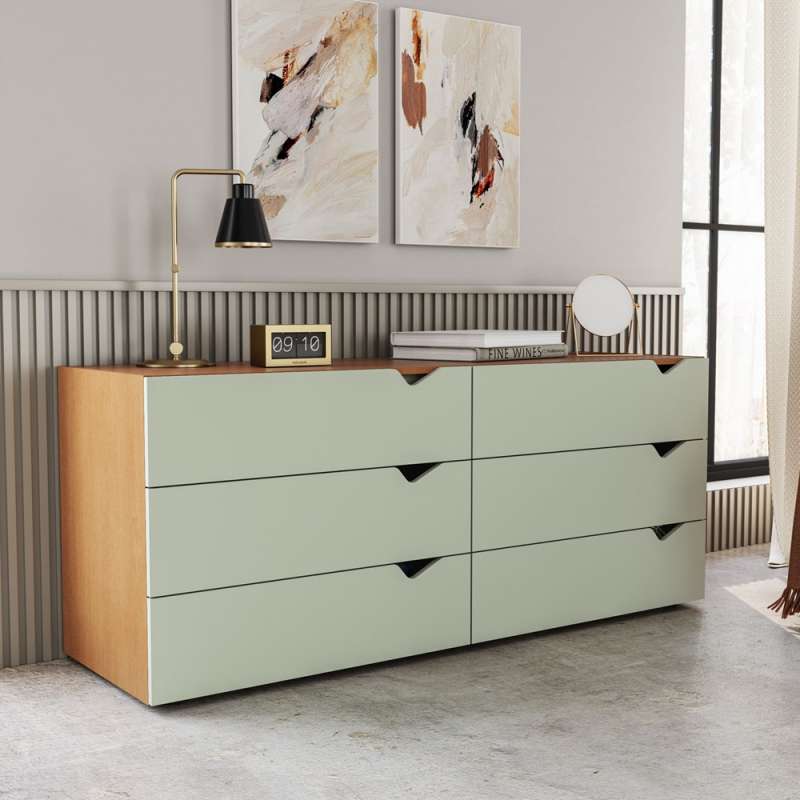 Cômoda 6 Gavetas Freijó e Verde Porto Politorno