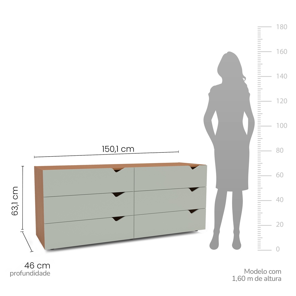 A Cômoda 6 Gavetas Freijó e Verde Porto da Politorno Móveis é sinônimo de elegância, espaço e funcionalidade. Com seu design moderno e clean, ela se adapta perfeitamente a diferentes ambientes — do quarto ao escritório, passando pela sala de estar como um rack ou balcão de apoio.
