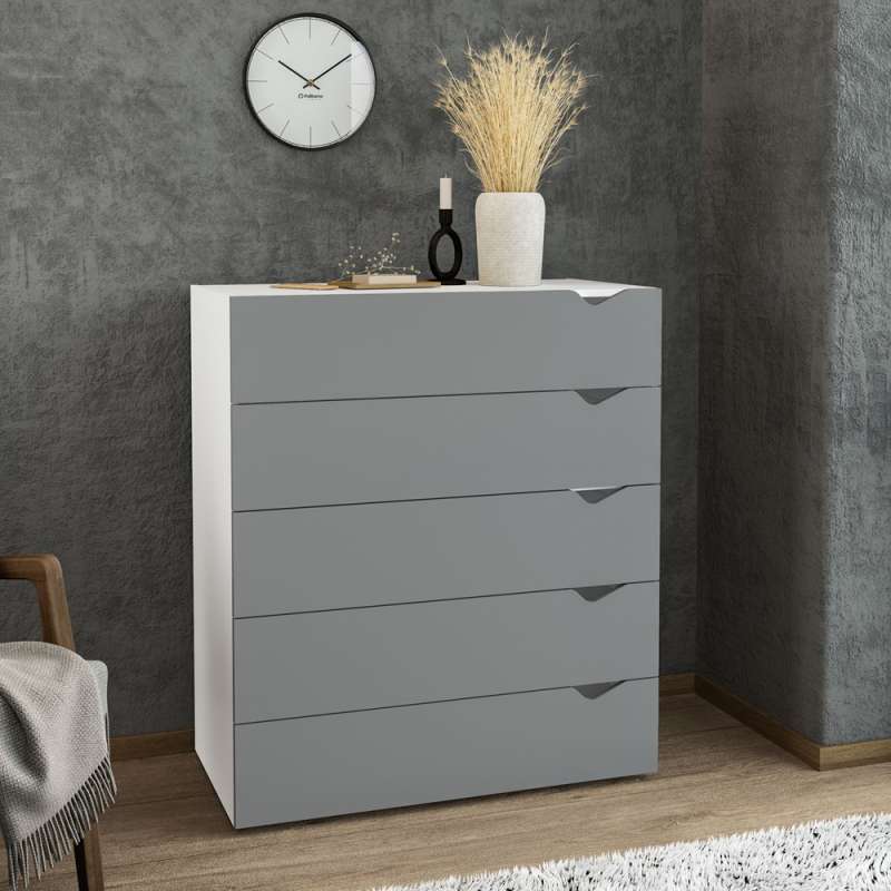 Cômoda 5 Gavetas Branca e Cinza Porto Politorno