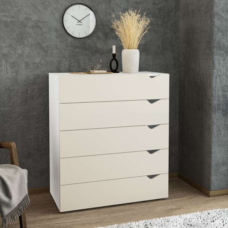 Cômoda 5 Gavetas Branca e Creme Porto Politorno