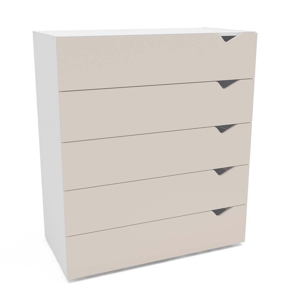 A Cômoda 5 Gavetas Branca e Creme Porto da Politorno Móveis une design moderno, resistência e funcionalidade. Ideal para organizar roupas com elegância e deixar o quarto mais bonito e prático.