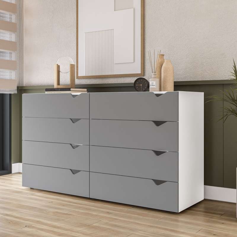 Cômoda 8 Gavetas Branca e Cinza Porto Politorno