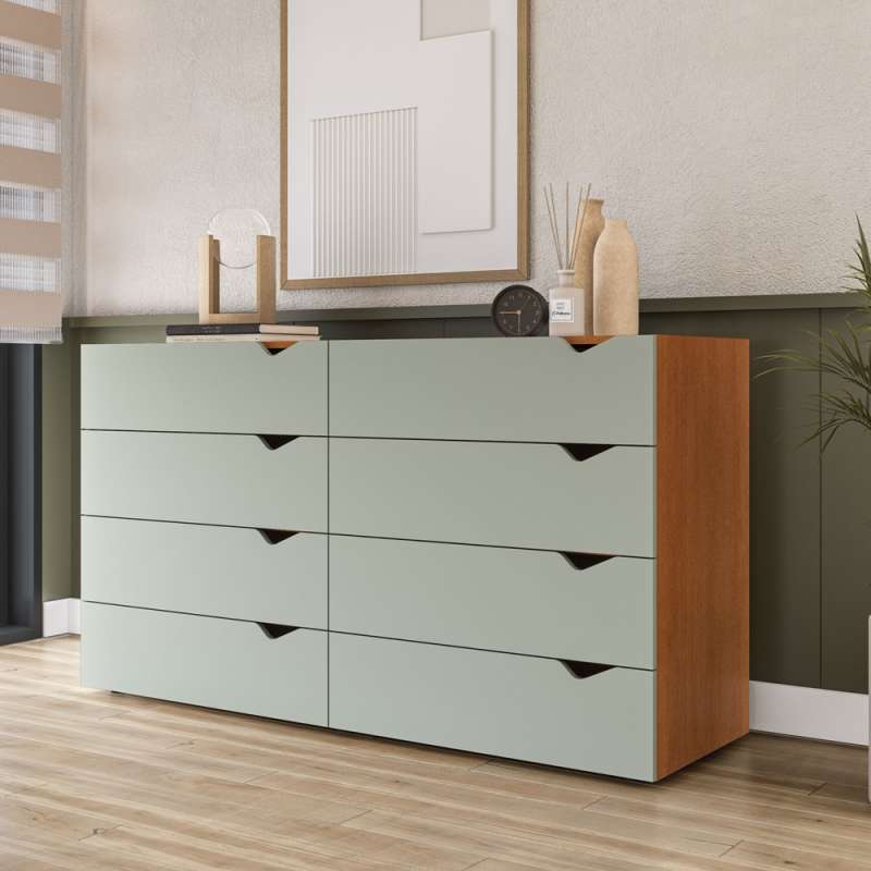 Cômoda 8 Gavetas Freijó e Verde Porto Politorno