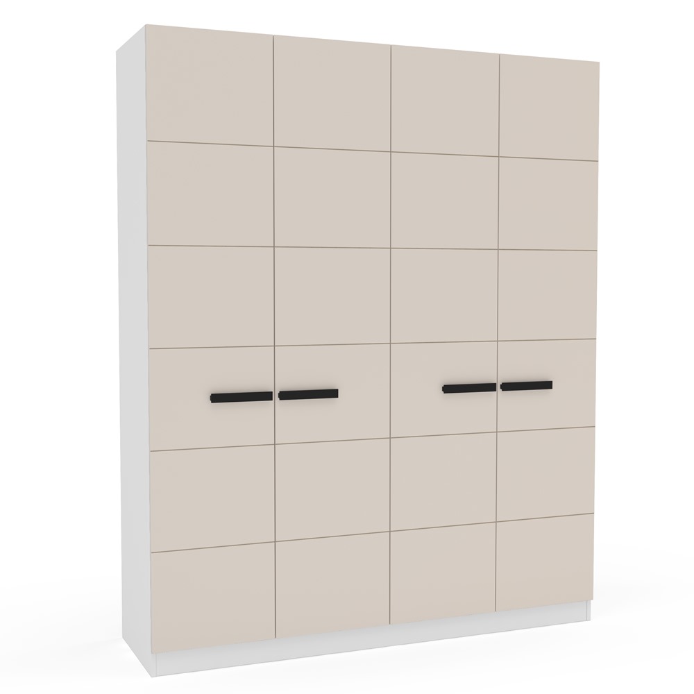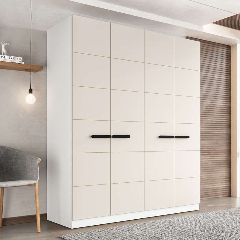 Roupeiro de 4 Portas e 4 Gavetas Lisboa Branco e Creme da Politorno conta com praticidade, elegância e organização para o seu quarto.