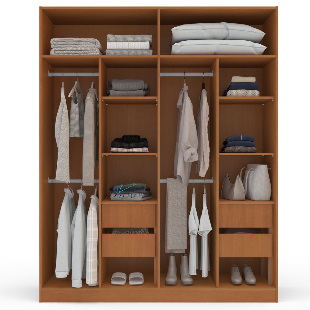 Roupeiro de 4 Portas e 4 Gavetas Lisboa Freijó e Branco da Politorno conta com praticidade, elegância e organização para o seu quarto.